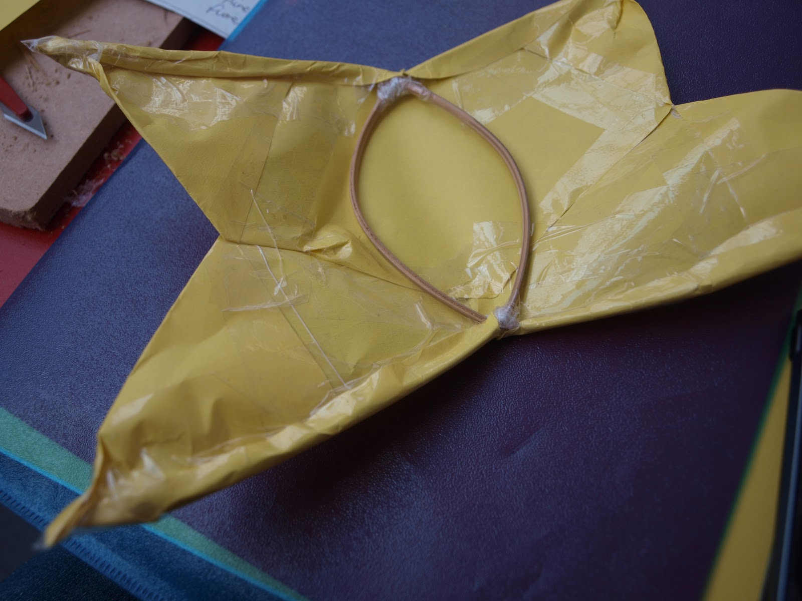 Thinking of making a butterfly kite, I wanted it to flutter like a butterfly would; here I have just put a piece of dowel through the middle of a piece of paper, and after sticking it together I folded the paper over to hide the exposed wood. the wings did flutter, but the kite structure is not supported or sustainable.