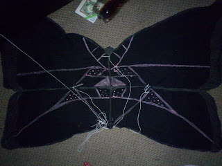When in flight a strong gust of wind broke my kite straight in the centre before I even had chance to document it flying, so I took it back home and repaired it, I also added a pattern with neon pink paint that glows green in the dark.